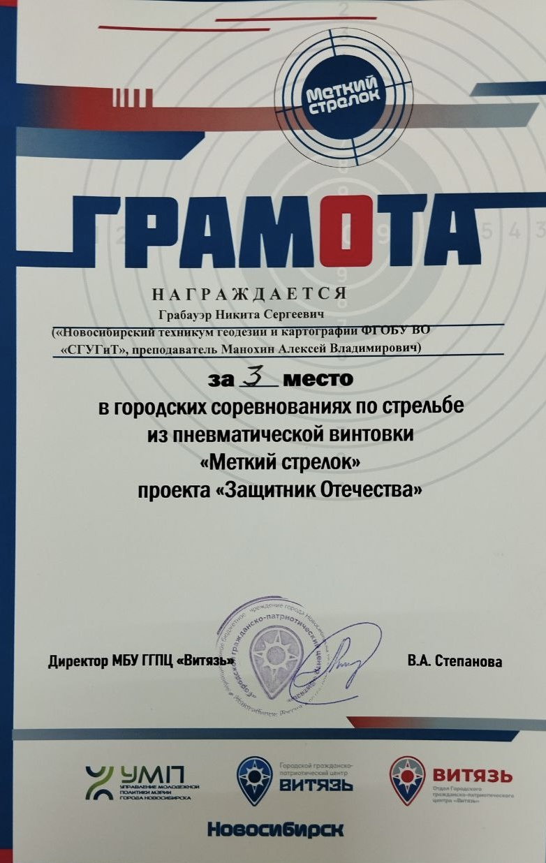 За три дня проведения соревнований участие приняли 21 команда. Перед началом стрельбы каждая команда прошла инструктаж по технике безопасности и ознакомилась с правилами обращения с винтовкой. Стрельбы проводились без пробных выстрелов, сразу на результат. И он не мог не порадовать. В итоге соревнований в личном зачете Грабауэр Никита, обучающийся группы ПГ11-16, занял 3 место.